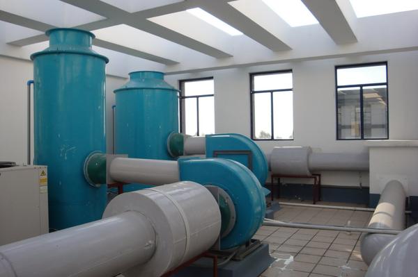 2、通风管路系统:主要有风机、风管、风阀、消声器、废气处理塔等。